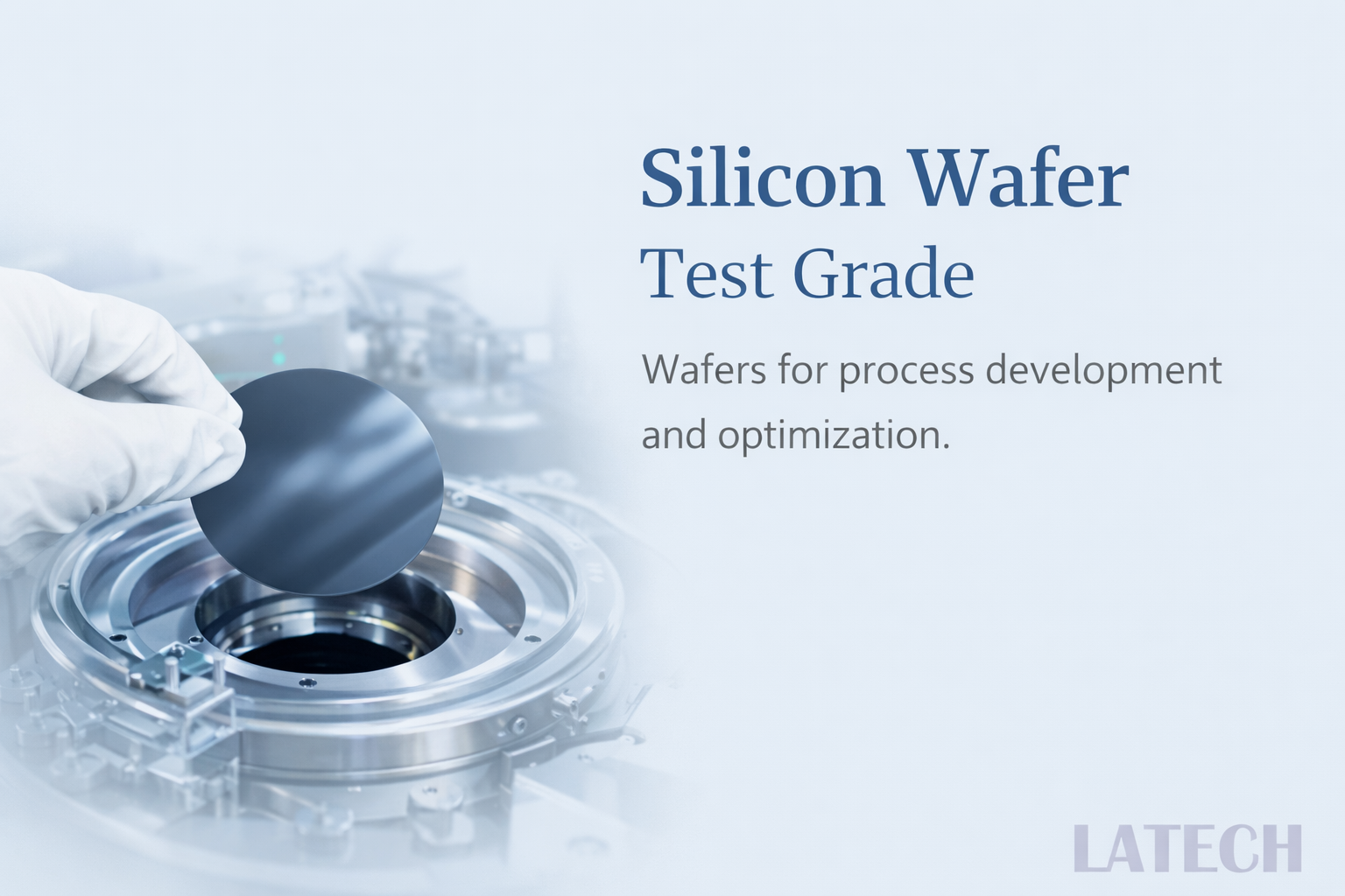 Compared to prime grade wafers, test wafers have slightly relaxed specifications but still maintain controlled electrical and structural properties suitable for meaningful experimental results.